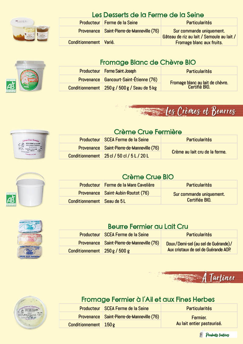 Notre offre est composée de produits fermiers et artisanaux de la région Normandie, collectés directement auprès des producteurs.